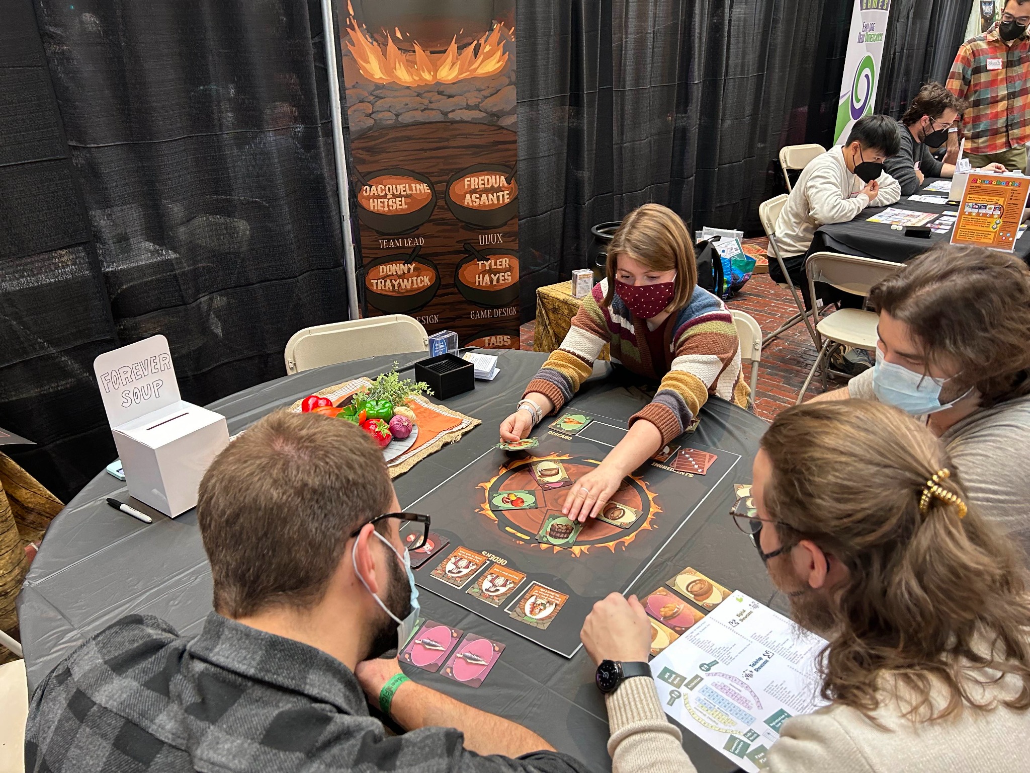 We've since taken the Forever Soup to the digital and in person Boston Fig 2024 events. In its 32nd iteration Forever Soup was one of 3 games nominated for Best Family Game and Best Theme at Boston Fig. Our team is working hard to improve Forever Soup as a home game experience. We hope to publish a final version in the next year.